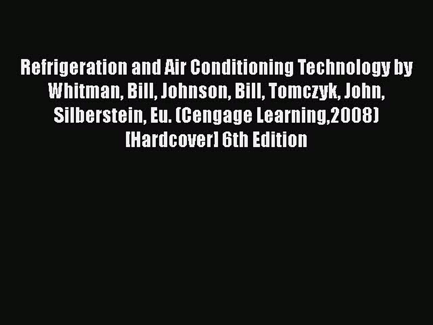 Download it once and read it on your kindle device pc phones or tablets. Please note that this is a pdf digital format and not a hardcover printed book and the pdf file will be sent to your email once the payment has been made and it can be. Refrigeration and air conditioning technology kindle edition by whitman bill johnson bill tomczyk john silberstein eugene. The new sixth edition contains units updated to include advances or changes in technology procedures and or equipment.