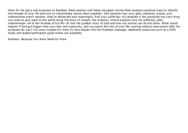 Restless Because You Were Made For More By Jennie Allen Youtube